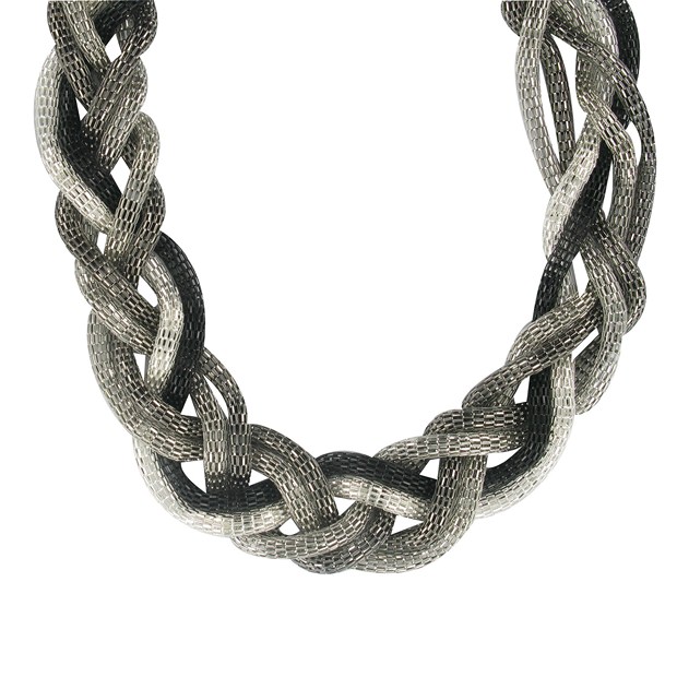 Eliot nous en met plein la vue avec ses bijoux accessoires qui sont résolument tressés, bracelets, colliers tout y est dans un coloris en argent pour les aficionados du glamour vous ne serez pas déçues !
