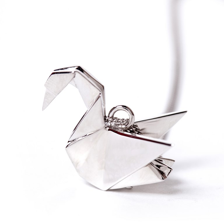 Ce dernier a eu la patience de leur apprendre à plier l’oiseau en origami et alors, ils ont eu l’idée de créer une marque de bijoux en argent, dont tous les modèles reprendraient les lignes principales des pliages. C’est ainsi qu’aujourd’hui la griffe compte une vingtaine de modèles ( oiseau, cygne, cocotte, lapin, tricératops, perroquet…) qui sont déclinés en sautoir, tour de cou, boucle d’oreilles et en bague. Cette marque permet de découvrir jour après jour l’immensité des possibilités qu’apporte l’art du pliage et de continuer à apporter une nouveauté dans le monde des bijoux avec la précieuse aide d’origamistes professionnels.
