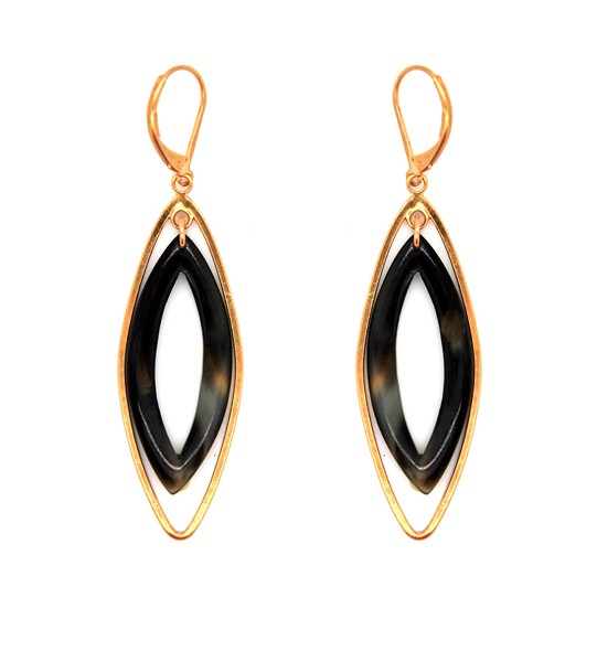 Matières : corne noire et blanche/ argent/ métal doré à l’or rose 18 carat (4 microns) / métal argenté