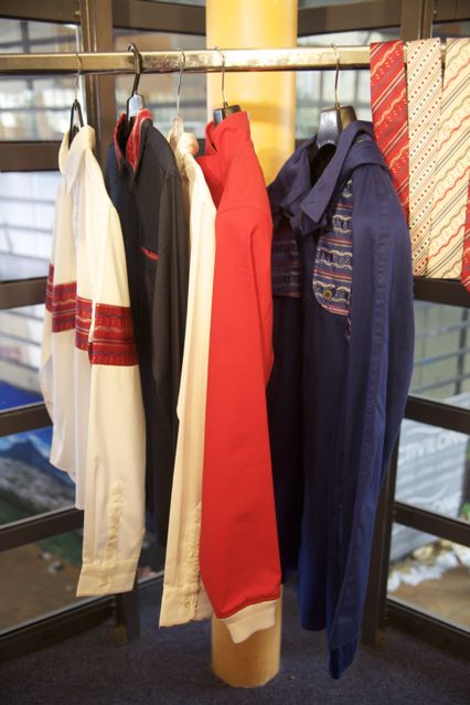 sur votre droite, les créations de THULA SINDI et en avant celle de son confrère sud africain MAXHOSA qui a proposé une magnifique collection maille pour hommes.