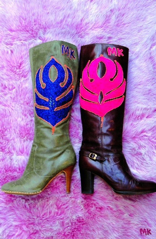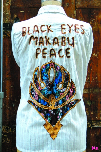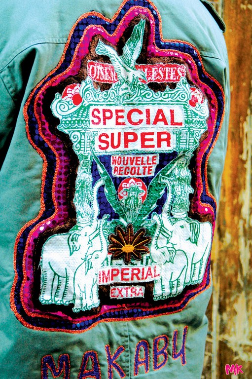 Charly pour sa marque Makabu exploite de façon novatrice le concept du recyclage. Surfant sur la tendance du vintage, il recycle des vestes, blousons et bottes qu’il orne de motifs et broderies de manière très personnel.