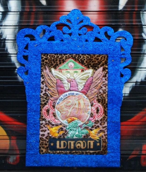 Un artiste complet qui crée également des tableaux composés eux aussi de sacs de riz découpés et collés en patchwork. Des compositions qui laissent libre court à son imagination et à toutes ses inspirations diverses et variées…