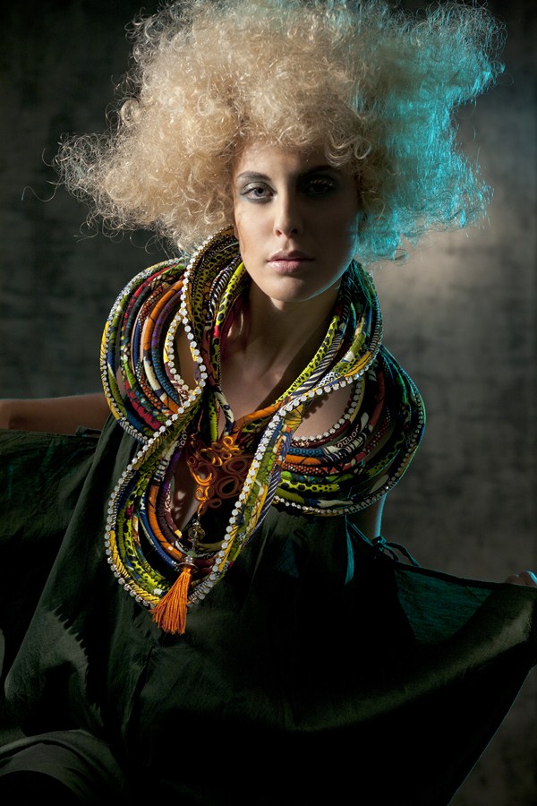 Toutes les créations de Nadia Dafri sont cousues à la main, au sein d’ateliers qui sont aussi des lieux de reconstruction de l’estime de soi. A l’origine rien ne prédestinait Nadia à faire cette carrière mais c’est l’Afrique qui la mettra face à son destin: durant un voyage, devant un étal de marché, elle s’émerveille de la générosité de couleurs et de motifs du wax. C’est dans ce tissu qu’elle s’essaye, bientôt, à reproduire un collier. Très vite, elle dérive du discret modèle original pour créer un plastron ample, au caractère bien affirmé. Depuis, la créatrice propose des pièces inédites. Nadia Dafri est présente, entre autres, au Marché des modes à Roubaix et collabore régulièrement avec la marque Moloko.