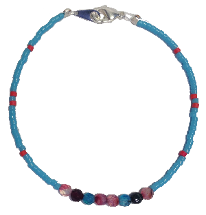 Bracelet Maldives, en perles de verre turquoise et rose, et perles de verre plaqué argent, et perles d’agate, 39 €