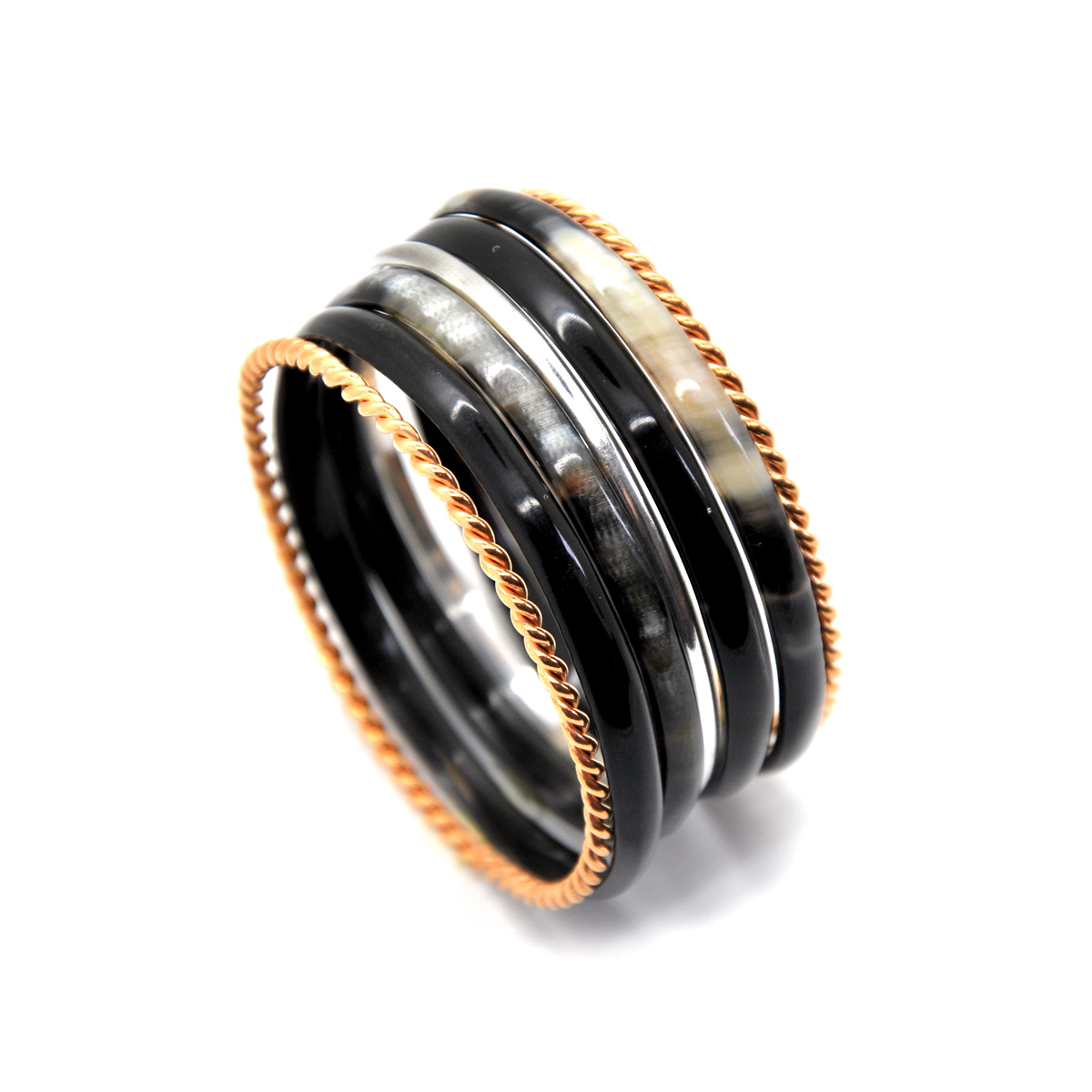 Elle met au goût du jour des bijoux et accessoires travaillés en corne et inspirés par l’art déco et des objets d’antan.