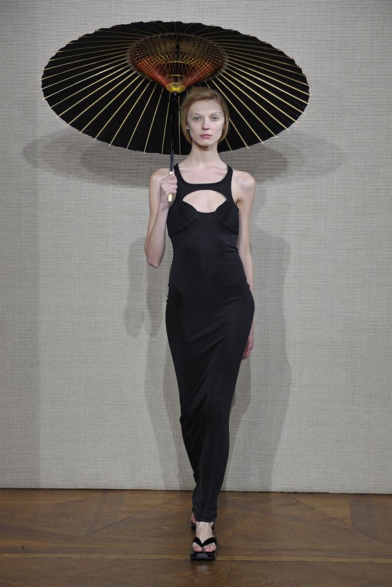 Fourreaux, robes bustiers, drapés de jersey, la silhouette proposée par le couturier indonésien est aérienne, fluide et magistrale.