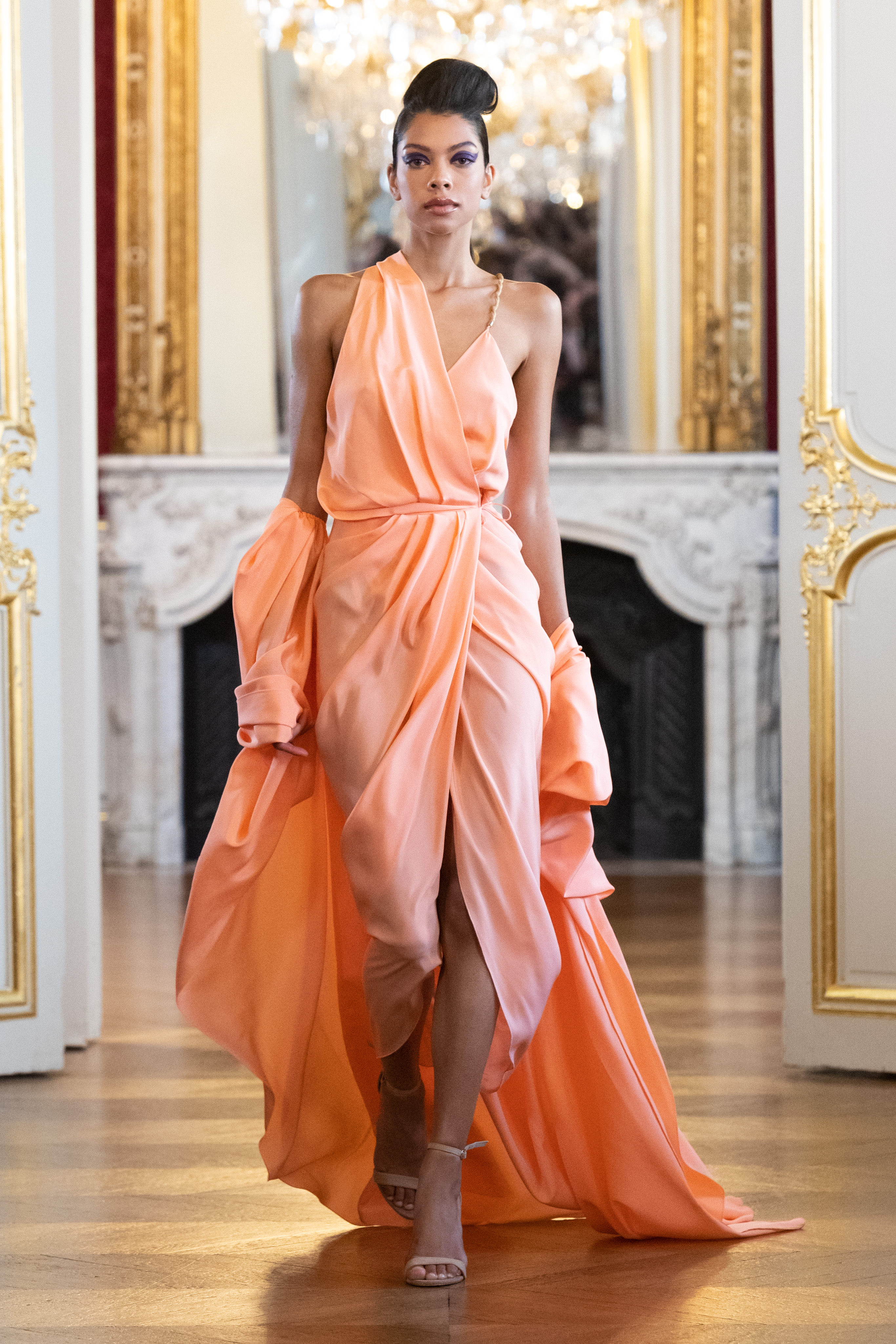 Au menu des silhouettes fluides et longilignes avec des étoffes aériennes qui s’envolent à chaque pas.
