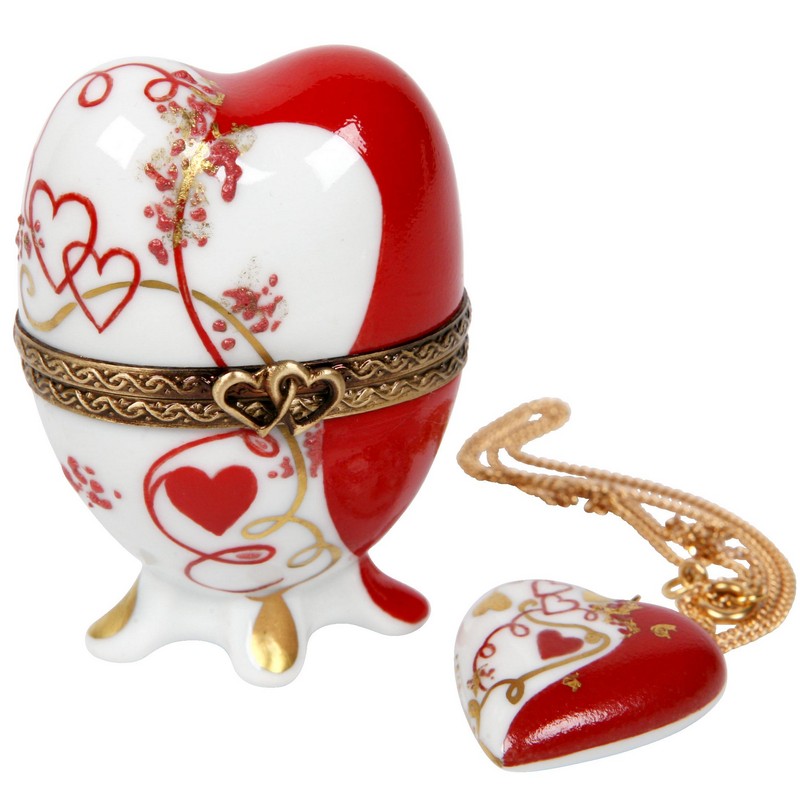 Le collier Love dans son écrin 300€, Collier Love 119€. Peints à la main , personnalisés et dorés à l’or fin.