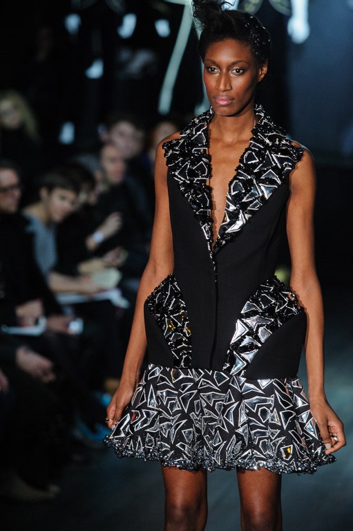 8. Manteau néoprène brodé d’éclats de miroir et jais