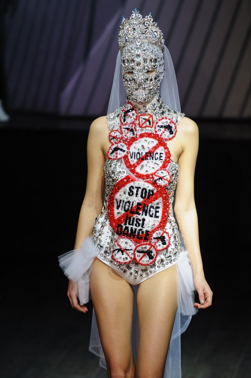 9. Robe-body en tulle miroirs, basque déstructurée rebrodée d’éclats de miroir et cristal