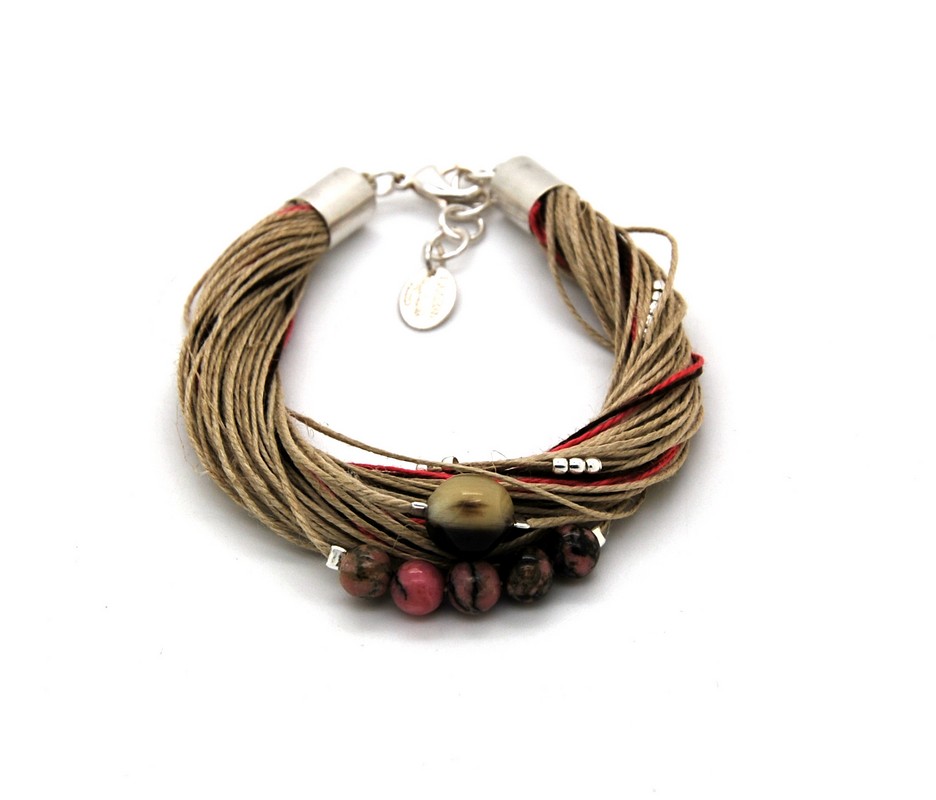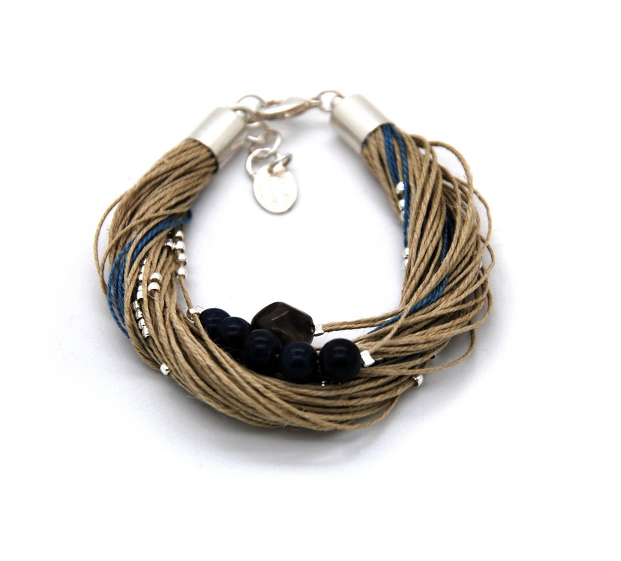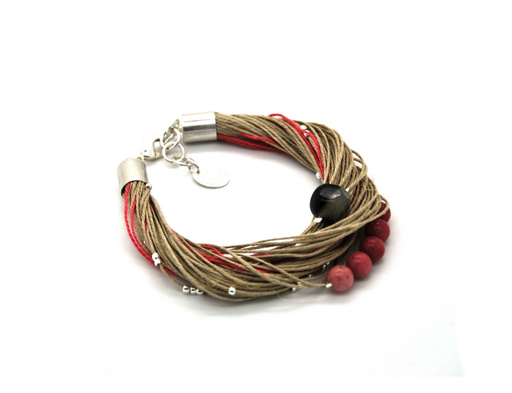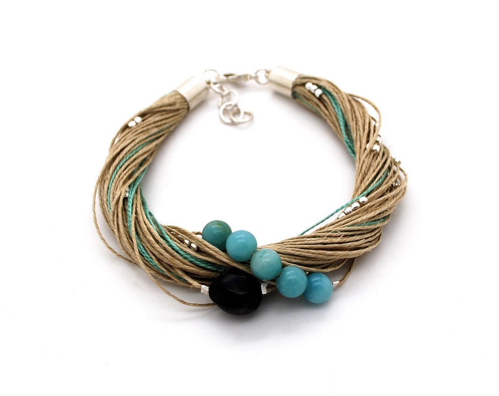 Des bracelets de toute beauté avec des pierres semi précieuses et du lin durable…