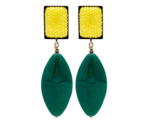 Boucles d oreilles Boucles d'oreilles Batik jaune vert, laiton traité bronze cabochon en acrylique et perle en verre. Collection Batik. JULIE SION, sur www.juliesion.com. 45.00€
