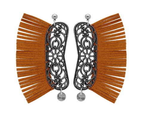 Boucles d oreilles Boucles d'oreilles Iroquois camel, laiton traité argent et daim. Collection Iroquois. JULIE SION, sur www.juliesion.com. 56.00€