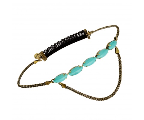 Headband Batik turquoise, laiton traité bronze perle en verre chaine et élastique. Collection Batik. JULIE SION, sur www.juliesion.com. 56.00€