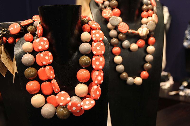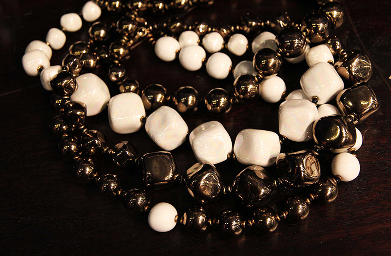 Chaque perle qui compose un collier, un sautoir, un bracelet, une boucle d’oreille est modelée puis émaillée à la main.