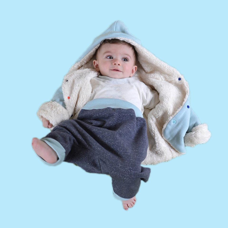 Tous les vêtements sont fabriqués dans un atelier de confection dans le 95 et ne sont utilisés que des tissus certifiés GOTS, essentiellement du coton bio ou un mélange de coton bio et de chanvre.