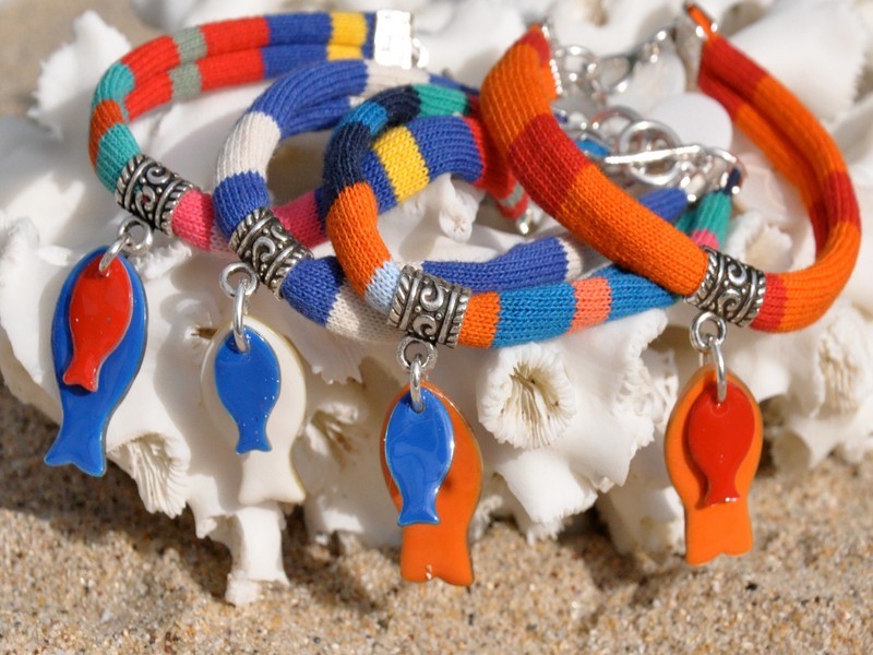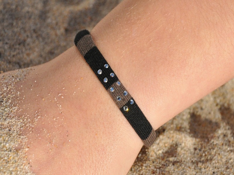 Bracelet 100 % pur coton naturel en authentique tissu de marinière bretonne avec application de 5  ou 10 cristaux “SWAROVSKI ELEMENTS”. Cristaux posés par un procédé spécifique permettant le lavage. Fermoir en étain, hypoallergénique garanti sans nickel. Chaque bracelet est accompagné du label accordé par Swarovski, vous en assurant son authenticité.2 tailles disponibles. Prix : 27 euros  et 29 euros