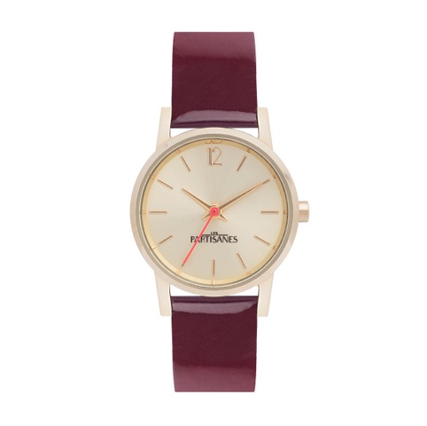Bracelet en cuir vernis, mat ou glitter, trotteuse corail, on adopte un look 100% rétro.