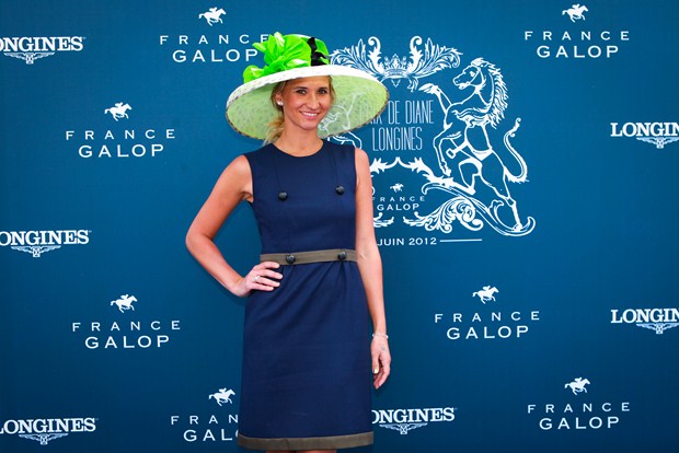 Dans les tribunes également, on pouvait admirer les élégantes chapeautées par Laurence Bossion, parmi lesquelles Tatiana Golovine portant une capeline Pétronille en sisal vert anis à pois noirs, gros nœud de velours vert et maxi pavot noir. Florence Ollivier-Lamarque, Directrice Générale Swatch France, avait choisi une coiffe en sisal corail, touffette organza de soie ivoire patine or, plumes d’oie ivoire à pois, tandis que Sylvie Germond avait opté la sobriété mystérieuse d’une voilette noire parsemée de cristaux Swarowsky. Aux côtés de son époux, président de France Galop, Nathalie Belinguier portait le modèle Bethsabée en sisal ivoire, fleurs et plumes turquoise, voilette vert menthe. Le monde de l’art était au rendez-vous avec la designer Maryam Mahdavi en capeline Tiffany, paille rose buvard, gros grain surpiqué poudre, fleur de velours et soie fushia, tandis que la galeriste Natacha Ami optait pour une silhoutte graphique en capeline noire et pastilles blanches. Sur l’écran de la chaine Equidia, ce fut un véritable défilé de chapeaux sur les jolies présentatrices Marien Costabadie, Céline Gualde, Manuela Jolivet, Natacha Harry et Fanny Salmon. Côté mode, les bloggueuses Lily Templeton, Mademoiselle à Paris et Heather Stimmler-Hall, Secrets of Paris, avaient craqué pour des modèles de la saison.