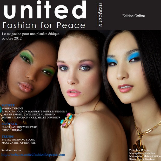 Et ce sont ces bijoux qui ont stylisé nos top modèles des trois Continents pour la Cover d’octobre 2012. Cover sublimée par la top photographe Jana Hernette et la maquilleuse Katia Ren, deux femmes extraordinaires qui travaillent au nom de la paix et de la beauté pour UFFP.