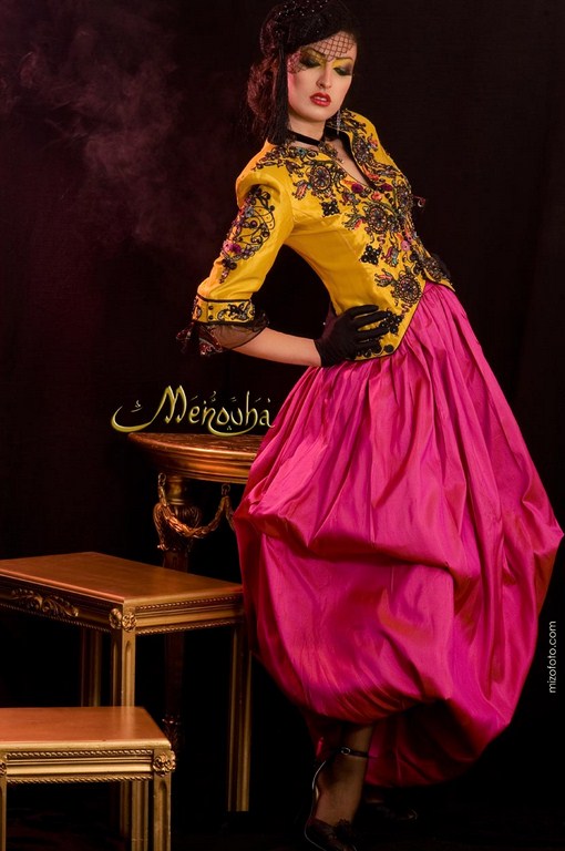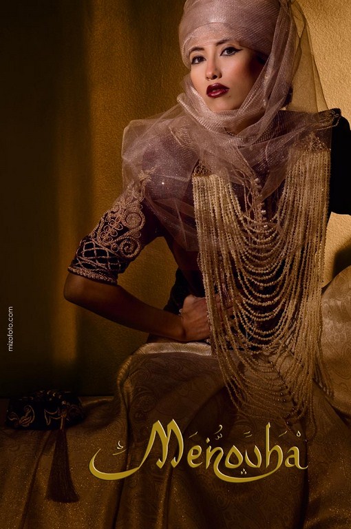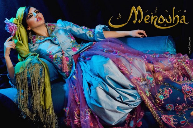 C’est véritablement l’image de l’Algérienne d’aujourd’hui, à cheval entre le passé et les nouvelles tendances “si je devais définir le style “Menouba” je dirais : contraste modernité et traditions, contraste orient et occident, contraste d’époques, contraste de couleurs” tout un programme…