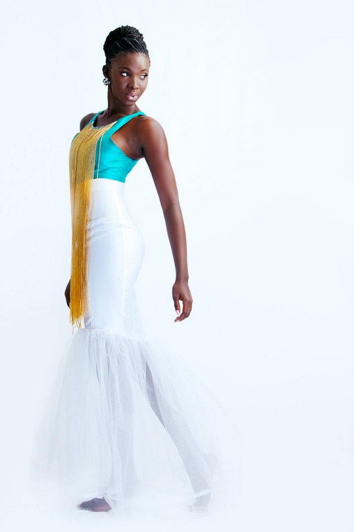 We work with different fabrics including raw silks, chiffons, organza, tulle and Ankara prints. Our new collection has seen us explore custom made tie dye and beads.