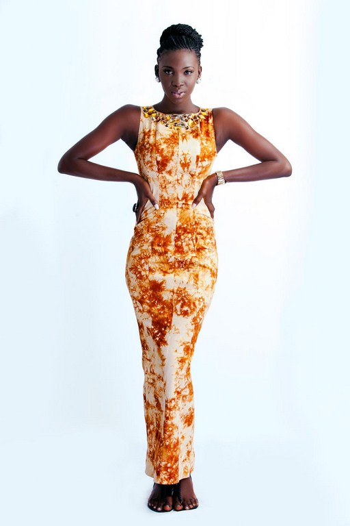 With Terra Firma, I knew I wanted to use a textile that was not Ankara print but at the same time African. I decided to look into tie-dye and discovered a technique that produced a marble effect. My team and I then went on to test of different fabrics and explore different colour ways. We settled on the browns, oranges and mustard because I wanted the collection to have an earthy feel. We also used raw silks and chiffons as complimentary fabrics.