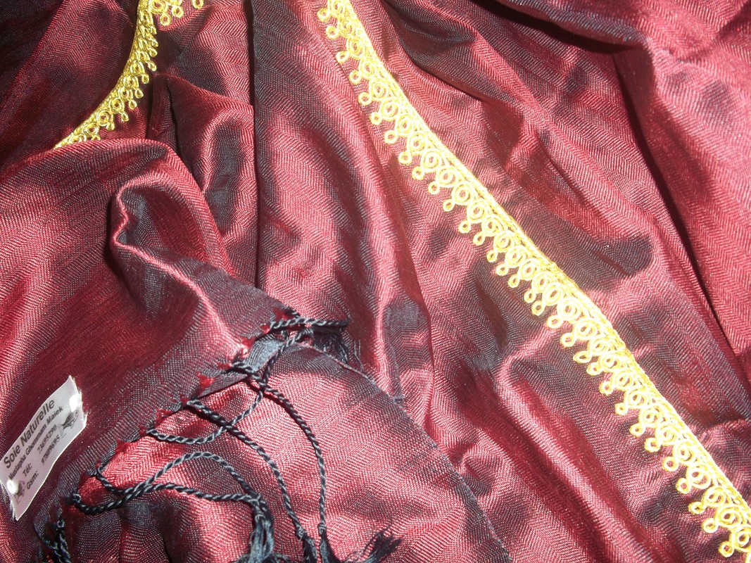 Echarpe 100% soie tissé a la main et brodé avec cable d’or inspiré de farmla de mariage Mahdoise,brodeuse Houda Ghoul