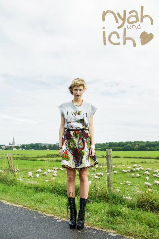 The German fashion label “nyah und ich” (nyah and I) symbolizes a connection between Africa and Europe – not just in its designs but also its name. Just one and a half years ago, the trained communication and graphic designer, Marie-Fleur Gloy, founded her own label nyah and I – a fashion and accessory labelcombining traditional African fabrics and techniques with contemporary European cutand design.
