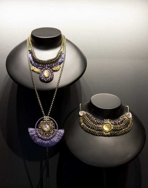 Quant à la scénographie des vitrines, des bijoux et des nouveaux présentoirs, ils sont l’œuvre d’Elisabeth Leriche : « Les pièces phares de la collection sont exposées dans l’alcôve centrale comme en suspension dans l’espace et éclairées de façon à révéler toute la richesse des matières et des savoir-faire artisanaux, plumes et pierres semi-précieuses, fines dentelles et orfèvreries ».