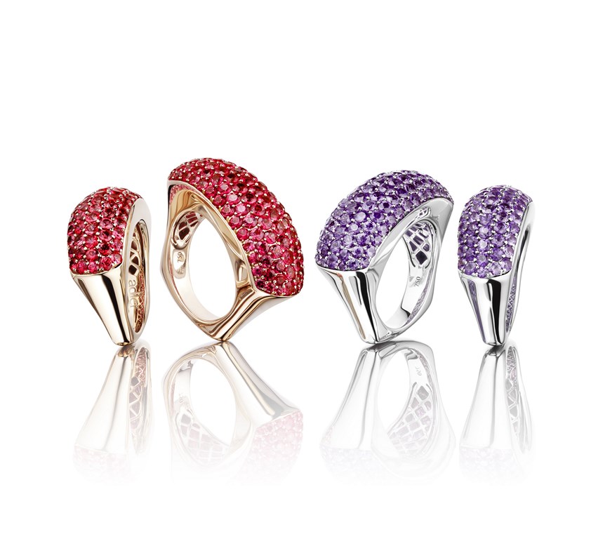 The name ‘Julia’ comes from the Latin word for ‘youthful’. A decade on and the rings in our “Pour Julia” collection are still as sought-after as ever. For summer 2013,  has b een introduced a delicious spectrum of fresh pink and red hues in the form of amethysts, sapphires and rubies, and a thinner variation of the rings with five rows of precious gemstones instead of seven. The “Pour Julia” rings are girly, fun, ultra-wearable – and an ideal gift for yourself or someone you adore, be it your sister, your daughter or your granddaughter.