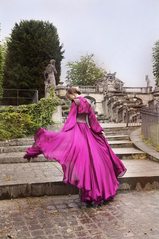 Cette collection parle d’une femme voyageuse qui se retrouve en Inde et qui découvre plusieurs facettes d’elle même. Une ligne et un univers ultra coloré qui fait ressortir son exubérance et son coté femme fatale glamour et sexy. A tout cela, est combiné un havre de paix; également où l’on peut se recueillir auprès des temples bouddhistes. Un voyage couture où l’heure et à, la réflexion, au partage et à la paix intérieure.