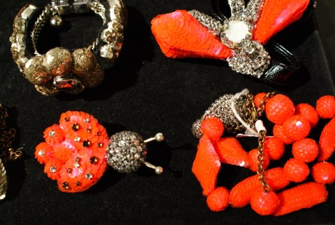 j’adore… depuis les débuts de la marque ! je crois même que c’est ma marque de bijoux préféré… ça, c’est la touche de fluo…. ;)) de l’asymétrique, du glam et du fait-main…. bravo ! et merci de nous faire partager le travail de talentueux créateurs