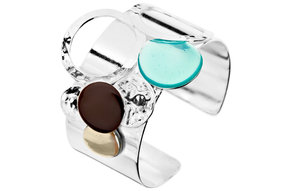 Collection en laiton plaqué argent, émail et résine