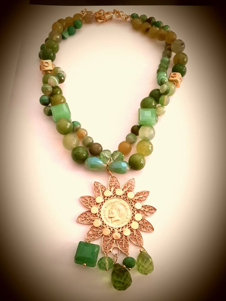 Son univers c’est embellir les parures par des pierres semi précieuses. Elles sont omniprésentes., chatoyantes et travaillées, mises en valeur, choisies, elles sont la marque de fabrique de la jeune créatrice.