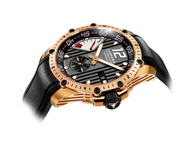 Proposant les fonctions heures, minutes, secondes et quantième dans un guichet à 6h, la nouvelle Superfast Automatic est équipée du calibre à remontage automatique Chopard 01.01-M, entièrement conçu, développé et réalisé dans les ateliers de Fleurier Ebauches, propriété du Groupe Chopard. Certifié chronomètre COSC, il dispose d’une réserve de marche de 60 heures. Son boîtier de 41 mm de diamètre en or rose 18 ct est étanche à 100 mètres.