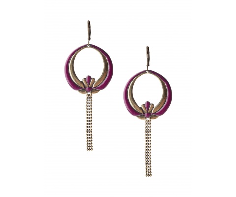 Boucles d oreilles Boucles d'oreilles Hélène - Rose - Estampe en laiton d'inspiration Art Nouveau et chaîne boule triple. VIRGINIE MAHE, sur www.virginiemahe.com. 42.00€