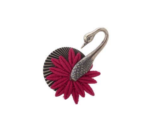 Broche Cygne – Estampe Art Déco surmontée d’une fleur en dentelle et d’une estampe cygne en laiton. VIRGINIE MAHE, sur www.virginiemahe.com. 38.00€