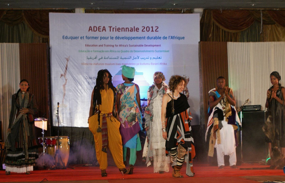 Finale d’un des designers ( Salima Abdelwahab du Maroc) lors de la caravane qui a défilé au gala d’ouverture de FAWE lors de la Triennale de l’Education en Afrique