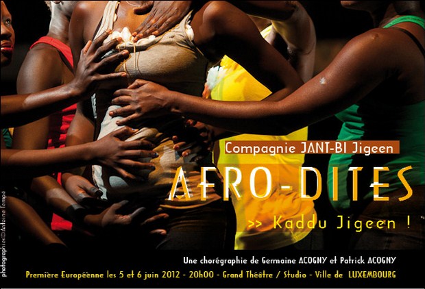 Afro-Dites / Kaddu Jigeen ! est la première pièce de la Cie Jant-Bi du Sénégal, une chorégraphie de Germaine Acogny et Patrick Acogny. C’est l’histoire de 9 jeunes femmes sénégalaises qui prennent la parole, c’est le regard dansé et décapant qu’elles portent sur leur vie et sur la société moderne sénégalaise. Une création 2012.