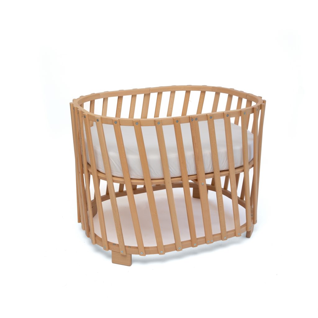 Même forme légèrement arrondi, mêmes dimensions originales avec un berceau/petit-lit de 70×90 cm évolutif en 70×140 cm. Et toujours la possibilité de l’ouvrir en méridienne.