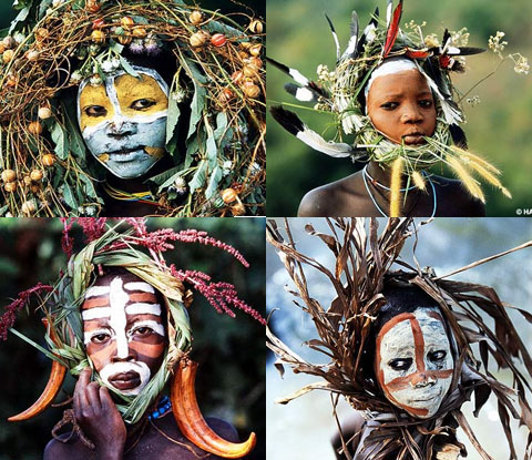 Dans la région du Rift, en Ethiopie, depuis des temps immémoriaux, vit une quinzaine de tribus adoptant des us et pratiques de l’ancien temps. La peinture corporelle fait partie des coutumes ornementales de ces diverses peuplades. Les hommes de cette vallée d’Afrique sont tous peintres et sont tous peintures. Des peintures nées dans le vif et le spontané, marquant l’indéfinissable barrière entre l’enfance et la maturité. Cet art du corps pour les « OMO » est un mouvement essentiel caractérisant tout un patrimoine culturel, hérité au fil des générations. Pas de code ancestral pour autant, si ce n’est le désir du beau et la séduction du paraître. Le corps bijou, le corps tableau, le corps fierté symbolique. Les clichés de Hans Sylvester sont un régal pour les yeux, l’invitation à une pratique devenue Art des couleurs, parures empruntées à dame nature. De véritables tableaux humains sont alors offerts à notre regard. La plupart sont des corps nus et nubiles, mais il y a également dans cette collection des visages d’hommes ou de femmes plus matures. Les pigments qu’offre spontanément la géologie de la Rift Valley à savoir les rouges, verts, ocres, jaunes, blancs de toutes nuances permettent une palette de couleurs des plus variées.