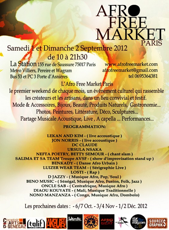 L’Afro Free Market Paris est une idée du styliste designer Mike Sylla, créateur de la marque Baïfall Dream, un événement multiculturel qui rassemble les créateurs, les artisans et de nombreux artistes pour un moment de partage et d’échange dans un lieu convivial et festif « La Station », une vision contemporaine de l’Afrique.