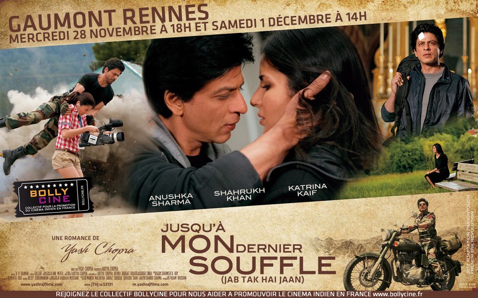 J’ai alors contacté le distributeur français AANNAFILMS que je connaissais pour lui demander de le sortir à NANTES. Ne sachant quel serait l’accueil, il ne voulait pas prendre le risque….mais je l’ai convaincu de le programmer…..  La date du 2 septembre 2012 a été arrêtée au Gaumont de Nantes. Habitant à 80 kms j’ai mobilisé à distance durant 1 semaine les associations, les médias locaux, les fans sur Facebook… même Les Bateaux Nantais avaient soutenu ma démarche 😉 Et le Jour J pari gagné la salle était pleine. 100 personnes de toutes origines, de tous âges. Dans le train du retour, naissait alors le concept de Bollyciné. Si j’avais pu le faire à distance, nous pouvions le faire partout en France. Le changement devait venir du public…. C’était au public de se prendre en main et d’agir pour faciliter le travail des distributeurs. Alors avec Lydie nous avons lancé le Collectif Bollyciné le 9 novembre 2012 pour soutenir le dernier film de Shah Rukh KHAN ‘Jab Tak Hai Jaan’ (Jusqu’à mon dernier souffle).