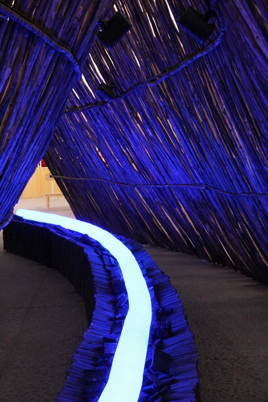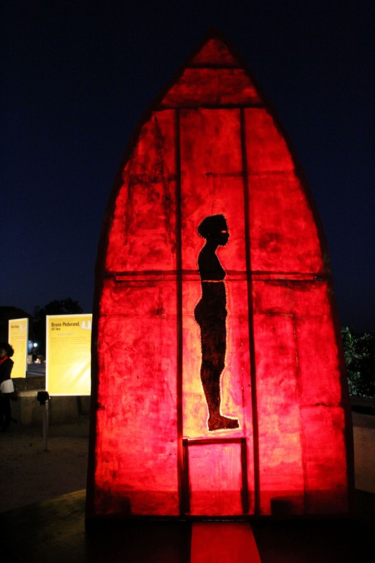 L’artiste réunionnais a voulu sonder la mémoire et rendre hommage aux esclaves. Il a transporté en pirogues du village de Yayé mille troncs, ligaturés pour former un abri. Une métaphore qui évoque l’histoire douloureuse mais éclairée par un chemin de lumières. Un symbole de la lutte et de la libération. Dans sa création on entend des voix, des paroles, des chants comme pour mieux signifier les rythmes gospel et blues, qui sont les preuves marquantes d’une création en devenir des peuples et des diasporas du Monde. Un hommage grandiose aux esclaves et à leur descendance.
