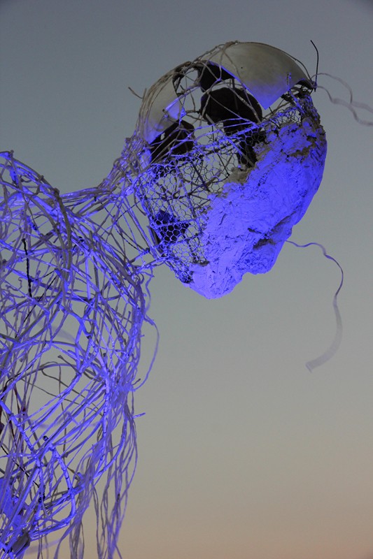 L’artiste martiniquais met en scène le retour symbolique des esclaves en Afrique. Le bois brulé, évoque le visage des esclaves condamnés à mourir .Des personnages hauts et debout en grand format, ont les bras levés. Bois métal et autres matériaux de récupération sont assemblés pour former des figures gigantesques. Ces figures sont les survivants, les rescapés d’un voyage qui reviennent à la matrice.