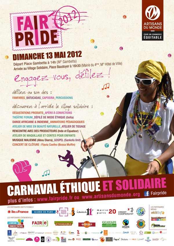 La Fédération Artisans du Monde, à l’initiative de l’évènement, orchestre cette seconde édition de la Fairpride, en partenariat avec une quarantaine de structures engagées dont 6 acteurs clés du Commerce Equitable : AlterEco, Ethiquable, Fair[e] un monde équitable, Guayapi, Max Havelaar et la Plate-Forme pour le Commerce Equitable.