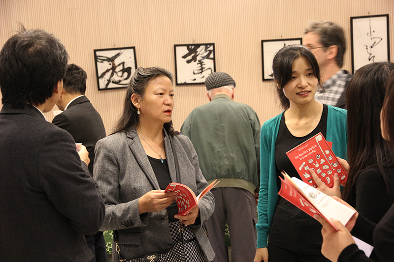 Suite à l’ouverture officielle, le vernissage de l’exposition « La danse de l’encre » réunit autour des calligraphies chinoises de TANG ZHIFANG tous les participants et le public dans une ambiance très conviviale dans le hall du Patronage Laïque Jules Vallès.