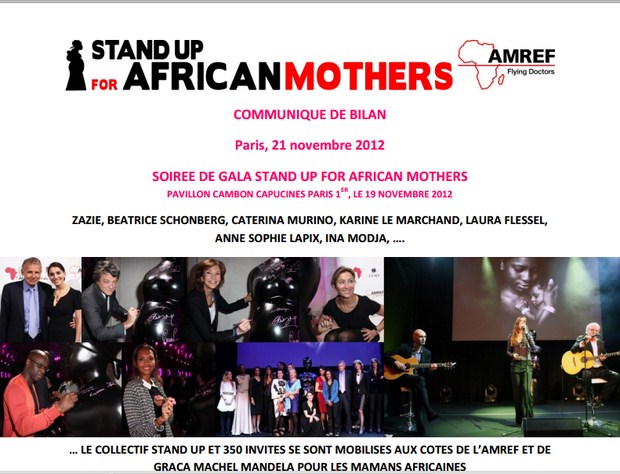 350 personnalités se sont mobilisées lundi 19 novembre à Paris, lors d’une grande soirée de solidarité organisée par l’AMREF, 1ère ONG africaine de santé publique, en faveur des mamans africaines : Stand Up for African Mothers.