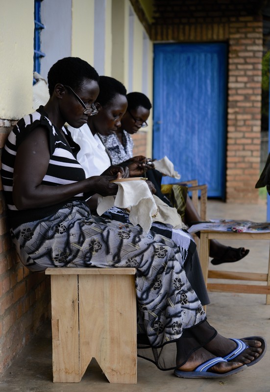 Aujourd’hui vingt brodeuses travaillent à temps plein dans l’atelier à Rutongo sur des collections d’accessoires de mode et de décoration, dessinées par Véronique.
